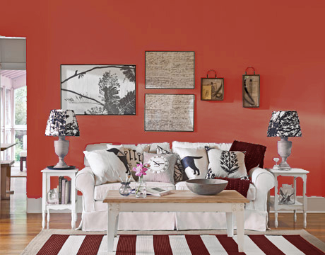 Vínové odstíny červené jsou opět o něco troufalejší barvou na stěny obýváku. Jsou určitě zajímavé, teplé a hřejivé, ale musí se s nimi opatrně. Hlavně pokud jde o tmavší prostory bez přírodního světla.