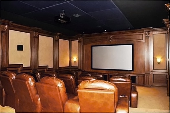Kdo z nás může mít doma vlastní kinosál? The Rock může. Kožené sedačky, dřevěné obložení a promítačka, nutný luxus pro vlastní promítání filmů.
