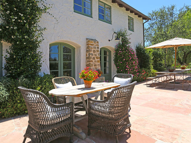 Exteriéry ranče jsou na Kalifornii typické. Sušší podnebí, kde rostou spíš sukulenty a k tomu modrá obloha a spousta slunce. Může to připomínat španělskou koloniální éru. Venkovní posezení se stylovými proutěnými křesílky, přiznané cihly a kámen s nedbale udělanou omítkou jsou nesmírně stylové. Taky byste si uměli představit, že tam sedíte a popíjíte mojito?
