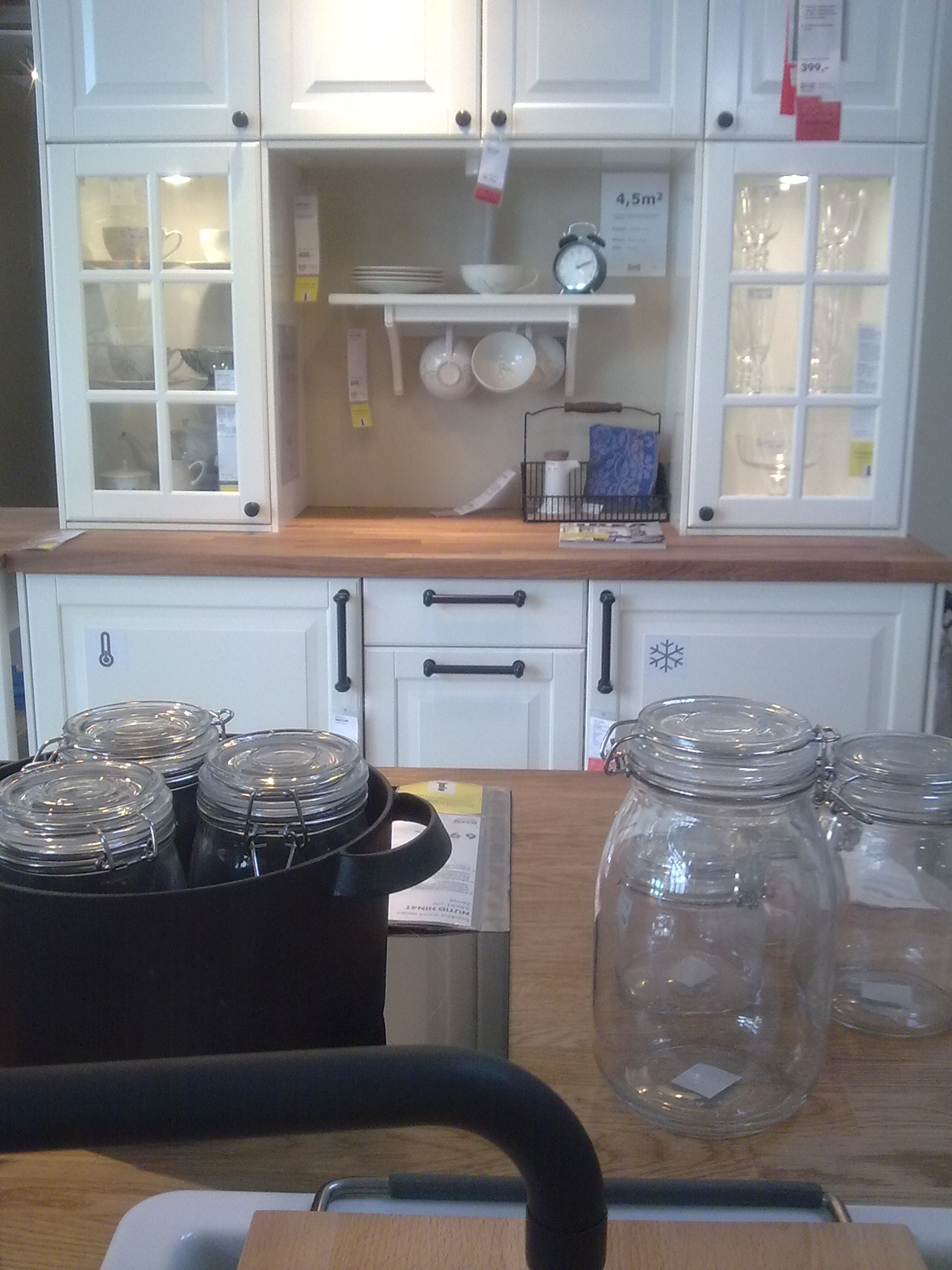 Fotky jsou přímo z ostravské prodejny. Nádherně vystavené kuchyně vás poměrně úspěšně lákají, jestli se vám tenhle styl líbí. Můžete si všechno do detailu prohlédnout a díky zajímavě zkombinovaným detailům člověk získá docela přesnou představu o tom, jak může kompletní kuchyně Ikea vypadat a nutno říct, že dojem budí velice pozitivní.