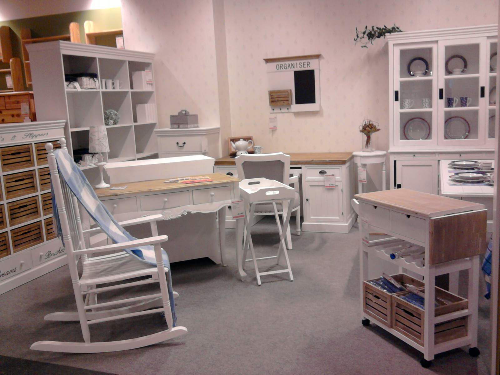Řada „Victoria“ zajímavým způsobem kloubí rustikální tvary masivního bílého nábytku a šedé svrchní desky, která dodává nábytku minimalistický moderní nádech. Součástí jsou komody, regály, ale taky porcelán a nádobí.