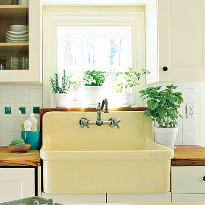K venkovské kuchyni se rozhodně nehodí klasické chromované dřezové baterie, alespoň pokud chcete mít doladěné detaily. Určitě tedy shánějte vintage baterie z mosazi nebo mědi.
